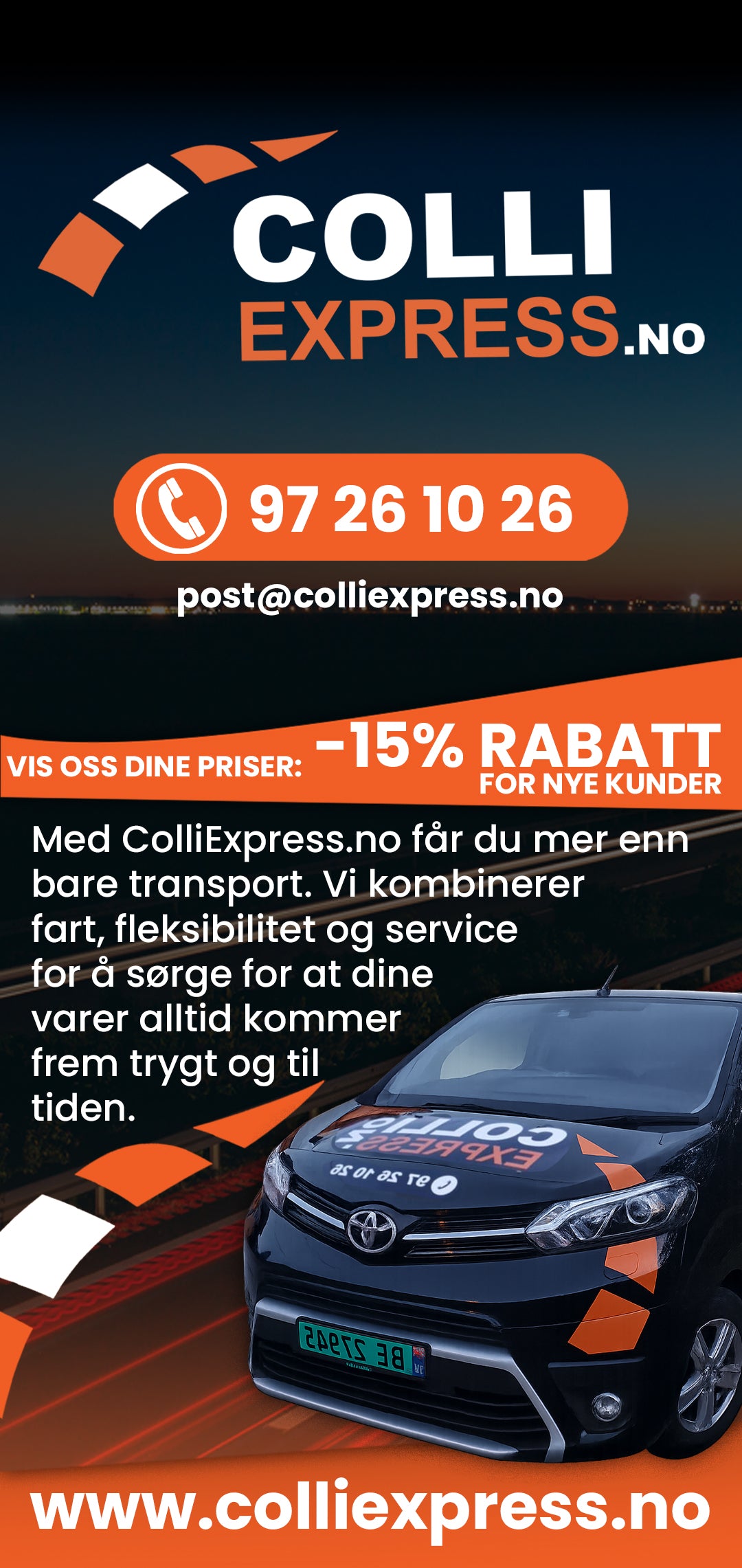 Våre miljøvennlige og moderne biler dekker områdene: Østfold, Oslo, Buskerud og Vestfold. Vi sørger for at dine forsendelser når destinasjonen punktlig og trygt.